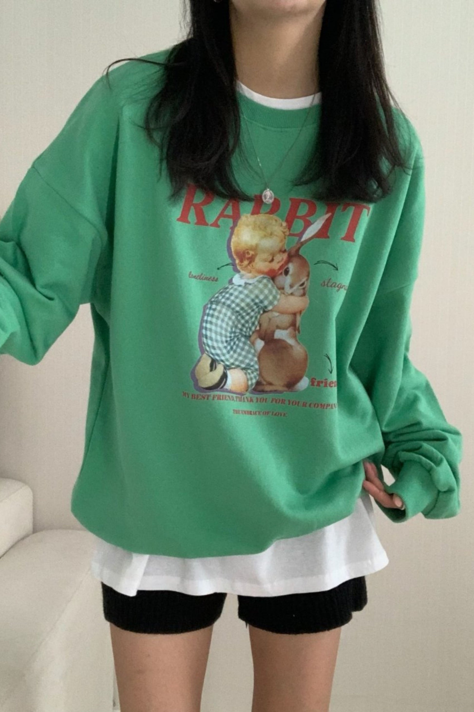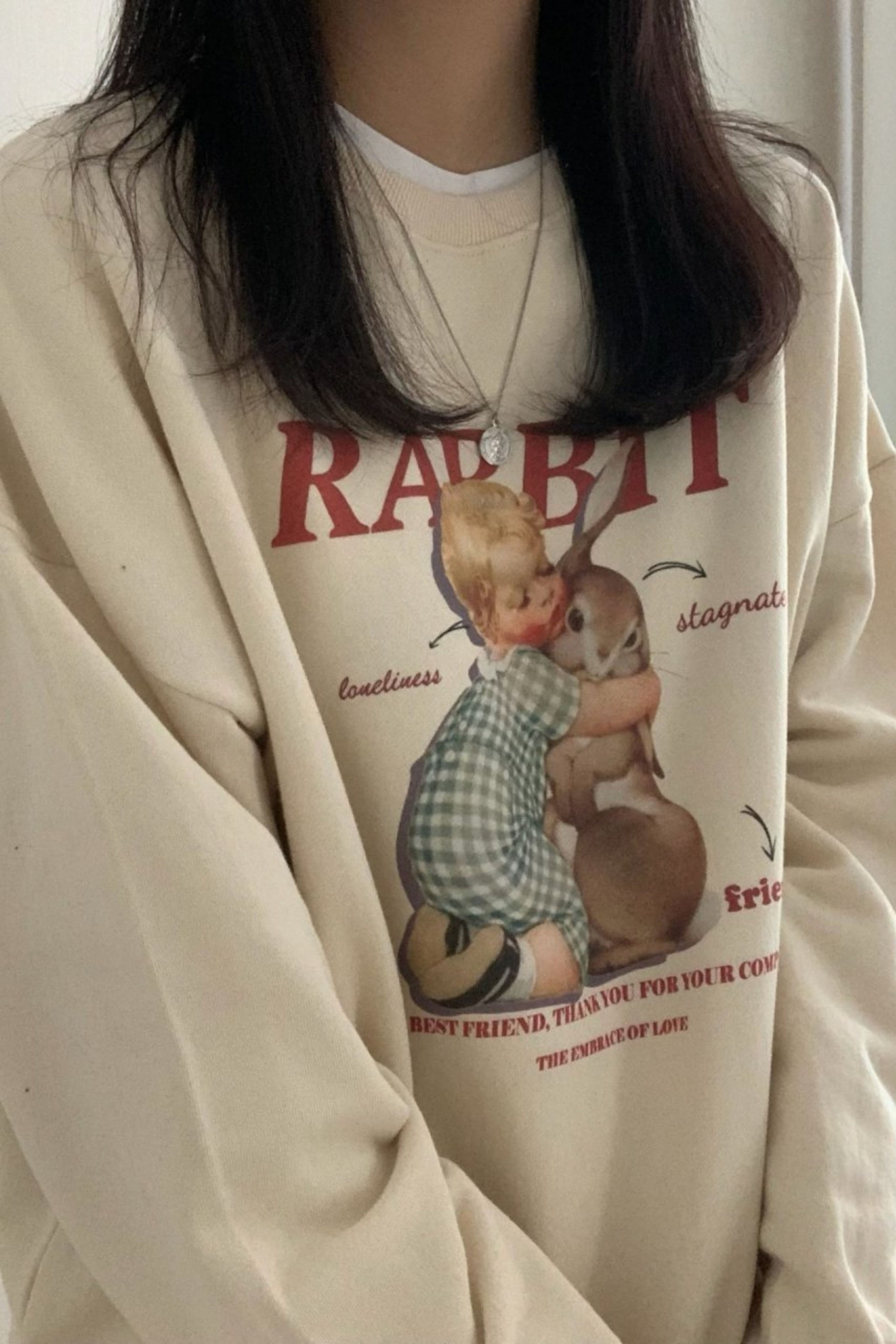 A vintage-inspired sweatshirt with a playful rabbit graphic that brings cozy charm to your everyday looks